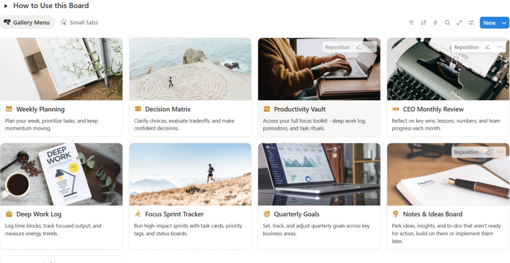 We’ve done the hard part of building so you don’t have to. No building from scratch. No Notion wrestling. Just choose, plug in and start making progress.